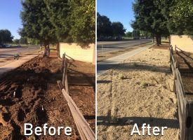 He began the first phase of his project on May 31 by removing all existing landscapes. He then met with the City of Clovis to check the existing landscape irrigation. Fortunately, the City was able to fix all the missing and broken sprinkler heads. On June 7, Christian completed his project, which included digging and removing 3 inches of dirt, planting, placing hardscape, and fixing the broken fence. He had approximately 20 people help with his project.